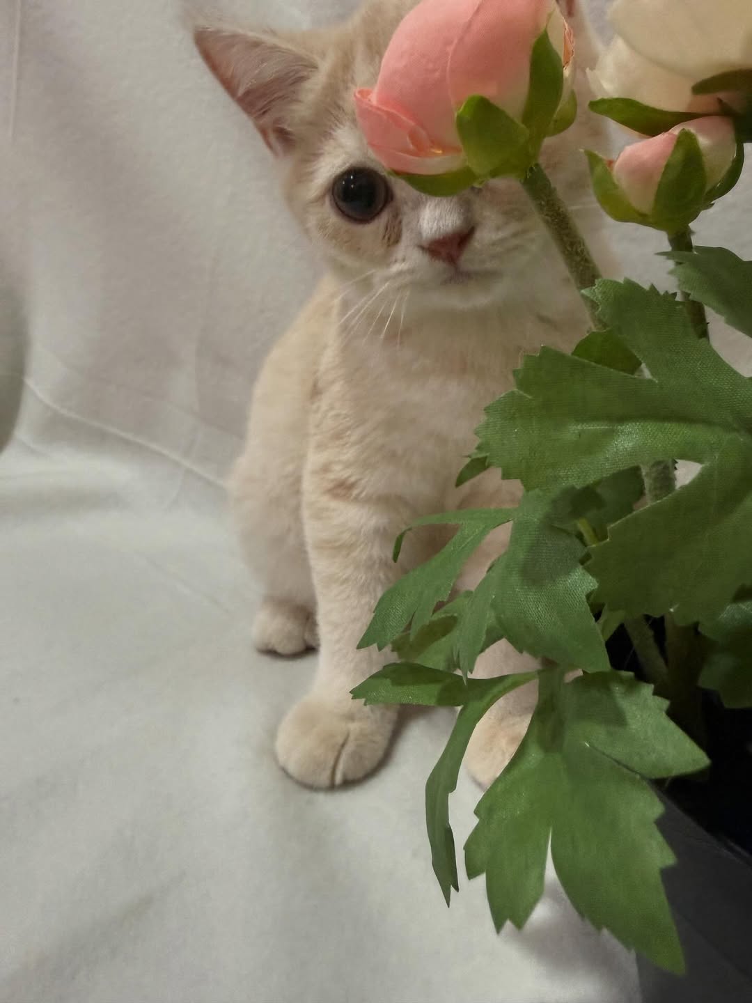 吾有小貓一隻,毛色若淡雲之姿,目光如秋水明澈。